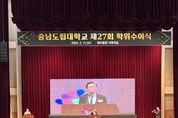 (케이시사타임즈) 충남도립대학교 졸업생 344명이 배움의 시간을 마치고 지역과 사회를 향한 새로운 출발선에 섰다. 충남도립대학교는 11일 대학 해오름관 다목적실에서 ‘제27회 학위수여식’을 개최하고 전문학사와 학사 학위를 수여했다. 이날 행사에는 김태흠 충남도지사를 비롯해 정광섭 충남도의회 부의장과 도의원, 청양군수, 군의회 의장 등 주요 기관장이 참석했으며, 졸업생과 학부모, 교직원 등 450여 명이 함께해 졸업생들의 앞날을 축하했다. 무엇보다 올해 학위수여식은 도정을 책임지고 있는 김태흠 지사가 직접 참석해 졸업생 한 사람 한 사람의 출발을 응원했다는 점에서 의미를 더했다. 김태흠 지사는 격려사와 함께 전체 수석에게 표창을 수여하며 지역 인재에 대한 기대를 전했다. 김태흠 지사는 “충남도는 청년이 지역을 떠나지 않아도 되는 환경을 만들기 위해 산업과 일자리를 키우고 주거와 정주 여건을 지속적으로 개선하고 있다”며 “청년들이 이곳에 뿌리내리고 살아가며 미래를 설계할 수 있도록 기반을 더욱 단단히 다져 나가겠다”고 밝혔다. 그러면서 졸업생들에게 ‘수처작주(隨處作主)’의 의