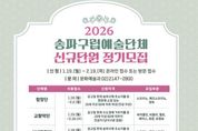 케이시사타임즈 관리자 기자 | 서울 송파구는 지역 문화예술 저변 확대와 구민의 문화 향유 기회 제공을 위해 오는 2월 19일까지 구립문화예술단체 신규단원을 공개 모집한다고 밝혔다. 현재 송파구는 서울시 자치구 중 가장 많은 총 8개의 구립문화예술단체를 운영하고 있다. ▲교향악단 ▲합창단 ▲실버합창단 ▲실버악단 ▲민속예술단 ▲청소년교향악단 ▲소년소녀합창단 ▲극단으로 구성되어 있으며, 어린이부터 어르신까지 전 세대가 어우러져 활동 중이다. 올해는 실버악단을 제외한 7개 단체에서 신규단원을 선발한다. 모집 기간은 단체별로 상이하며, 최대 2월 19일까지다. 입단을 희망하는 구민은 송파구청 홈페이지 고시·공고란에서 단체별 자격 조건과 모집 부문을 확인한 후, 응시 서류를 작성해 이메일로 제출하거나 송파구청 문화예술과로 방문 접수하면 된다. 선발 절차는 1차 서류 심사와 2차 실기 및 면접(오디션)을 거쳐 최종 합격자를 결정한다. 단원으로 위촉되면 '한성백제문화제', '석촌호수 벚꽃축제' 등 송파구의 대표 축제 무대에 서게 되며, 롯데콘서트홀과 송파문화예술회관 등에서의 정기 공연 기회도 주어진다