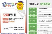 (케이시사타임즈) 문경시는 시민들에게 체계적이고 수준 높은 평생학습 기회를 제공하기 위해 2026년『경북도민행복대학 문경시캠퍼스』명예학사과정 입학생을 2월 3일부터 3월 10일까지 선착순 모집한다. 경북도민행복대학은 지역 주민의 삶의 질 향상과 시민역량 강화를 목표로 운영되는 평생교육 과정으로, 교육 대상은 문경시민이며 교육 장소는 문경대학교이다 . 학사일정은 1년 과정 총 30주(상반기 15주, 하반기 15주)로 운영되며, 매주 수요일 2시간씩 진행된다. 교육과정은 ▲경북학 ▲시민학 ▲미래학 ▲인문학 ▲사회·경제 ▲생활·환경 ▲문화·예술 등 7개 영역의 실생활에 필요한 평생학습 과정으로 구성돼 있으며, 지역 이해와 시민 역량 강화를 아우르는 통합형 과정으로 운영할 계획이다. 특히, 기존 수강생도 졸업 후 2년이 경과하면 재수강이 가능하도록 개선했으며, 학습자 간 소통과 참여 중심의 학습을 통해 지역사회에서의 역할을 확대할 수 있도록 운영할 방침이다. 입학 신청은 유선 접수로 진행하며, 문경대학교 평생교육원, 문경시청 교육지원과 평생학습팀으로 문의 및 신청하면 된다. 신