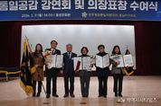 (케이시사타임즈) 민주평화통일자문회의 충남지역회의(부의장 정윤)는 2월 9일 오후 2시, 홍성문화원에서 '통일공감 강연회 및 의장표창 수여식'을 개최했다. 의장(대통령)표창은 민주평화통일자문회의 활동에 적극 참여하며 평화통일 공감대 확산과 지역 통일 활동 활성화에 기여한 자문위원과 협의회, 대행기관 공무원에게 수여된다. 이번 수여식에서는 의장이신 대통령을 대신하여 정윤 충남부의장이 자문위원 23명과 공무원 2명, 2개 지역협의회를 수여했으며, 참석한 자문위원과 지역주민들을 위해 평화통일의 필요성에 대한 이해를 높이기 위한 ‘통일공감 강연회’도 진행했다. 정윤 부의장은 “오늘 표창을 받으신 자문위원 여러분과 공무원, 행정실장께서는 민주평통의 가치와 사명을 현장에서 묵묵히 실천해 오신 분들이다.”며 “이분들의 헌신과 노력이 있었기에 지역사회 속에서 통일공감대가 확산되고 민주평통의 역할 또한 더욱 굳건해질 수 있었다.”라고 말했다. 민주평통 충남지역회의는 앞으로도 평화공존, 공동성장의 한반도 구현을 위한 다양한 프로그램을 통해 국민과 함께하는 평화통일 공감대 확산에 적극 나설 계획이다.