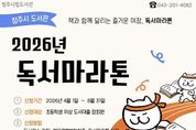(케이시사타임즈) 청주시립도서관은 시민들의 독서 습관 형성과 책 읽는 문화 확산을 위해 ‘2026 독서마라톤’을 운영한다고 26일 밝혔다. ‘독서마라톤’은 책을 읽고 독서기록을 작성하면 이를 거리로 환산해 정해진 코스를 완주하는 참여형 독서 프로그램이다. 시민들이 일상에서 꾸준히 책을 읽고 독서의 성취감도 느낄 수 있도록 마련됐다. 신청 기간은 오는 4월 1일부터 8월 31일까지며, 대회 기간은 4월 1일부터 9월 30일까지 총 183일간이다. 참여 대상은 초등학생 이상 청주시립도서관 도서 대출 정회원이다. 도서관 누리집 ‘책으로 행복한 청주’ 내 독서마라톤 신청 페이지에서 접수하면 된다. 독서기록은 독서일지를 작성하면 인정되며, 기록 기준은 ‘1쪽당 2m’이다. 참가자는 개인 6개 코스와 단체 2개 코스 중 선택해 참여할 수 있다. 운영 코스는 △시립도서관 1.5km △철당간 3km △수암골 5km △상당산성 10km △정북동토성 21km △초정행궁 42.195km로 구성됐다. 완주자에게는 2027년 도서 대출 권수 2배 확대 혜택과 기념품이 제공되며, 우수 완주자에 대해